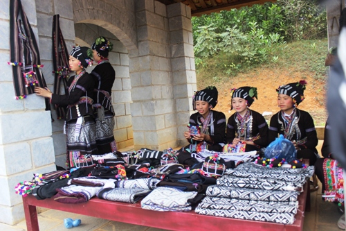 Gian hàng bán hàng thổ cẩm của dân tộc Lự đen đến từ tỉnh Lai Châu